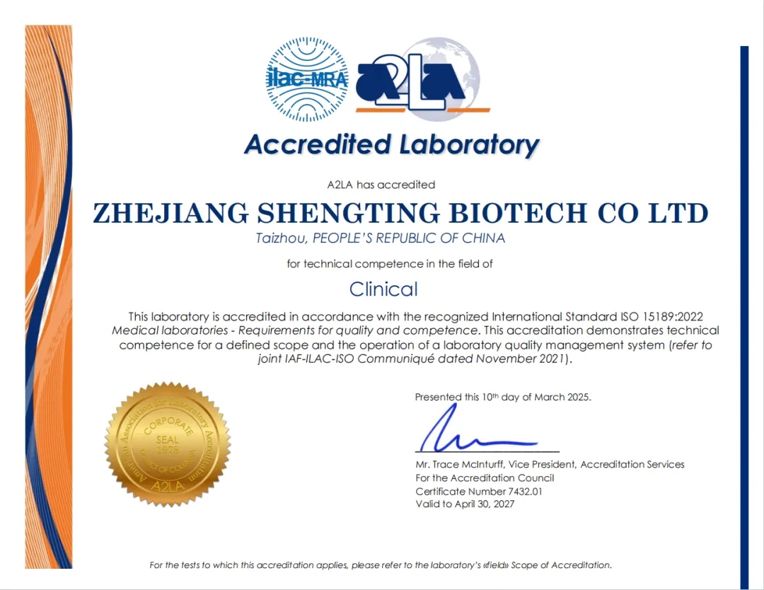 2025年初春,圣庭醫(yī)療“零缺陷”通過(guò)ISO 15189醫(yī)學(xué)實(shí)驗(yàn)室質(zhì)量與能力國(guó)際標(biāo)準(zhǔn)認(rèn)證,標(biāo)志著公司在醫(yī)學(xué)檢測(cè)服務(wù)的質(zhì)量管理體系、技術(shù)能力、人員素質(zhì)及服務(wù)水平等方面均達(dá)到國(guó)際先進(jìn)標(biāo)準(zhǔn)。令人振奮的是,圣庭醫(yī)療由此成為國(guó)內(nèi)首家在腫瘤和感染NGS雙項(xiàng)目上獲得CAP+ISO 15189國(guó)際“金標(biāo)準(zhǔn)”雙認(rèn)證的公司!品質(zhì)鑄就信賴,圣庭醫(yī)療將持續(xù)優(yōu)化創(chuàng)新,為醫(yī)療機(jī)構(gòu)、患者及健康管理領(lǐng)域提供更高效、更可靠的檢測(cè)解決方案。